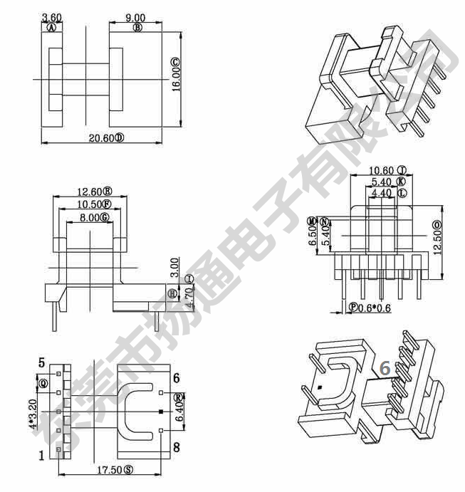 EE16变压器骨架电木骨架高频骨架电EE16变压器骨架电木骨架高频骨架电源骨架YT-1619-1 源骨架YT-1619-1 6