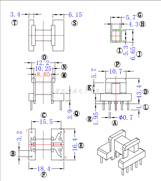EE16变压器骨架电木骨架EE16骨架EE16电源骨架通信骨架骨架YT-1602-2s 3