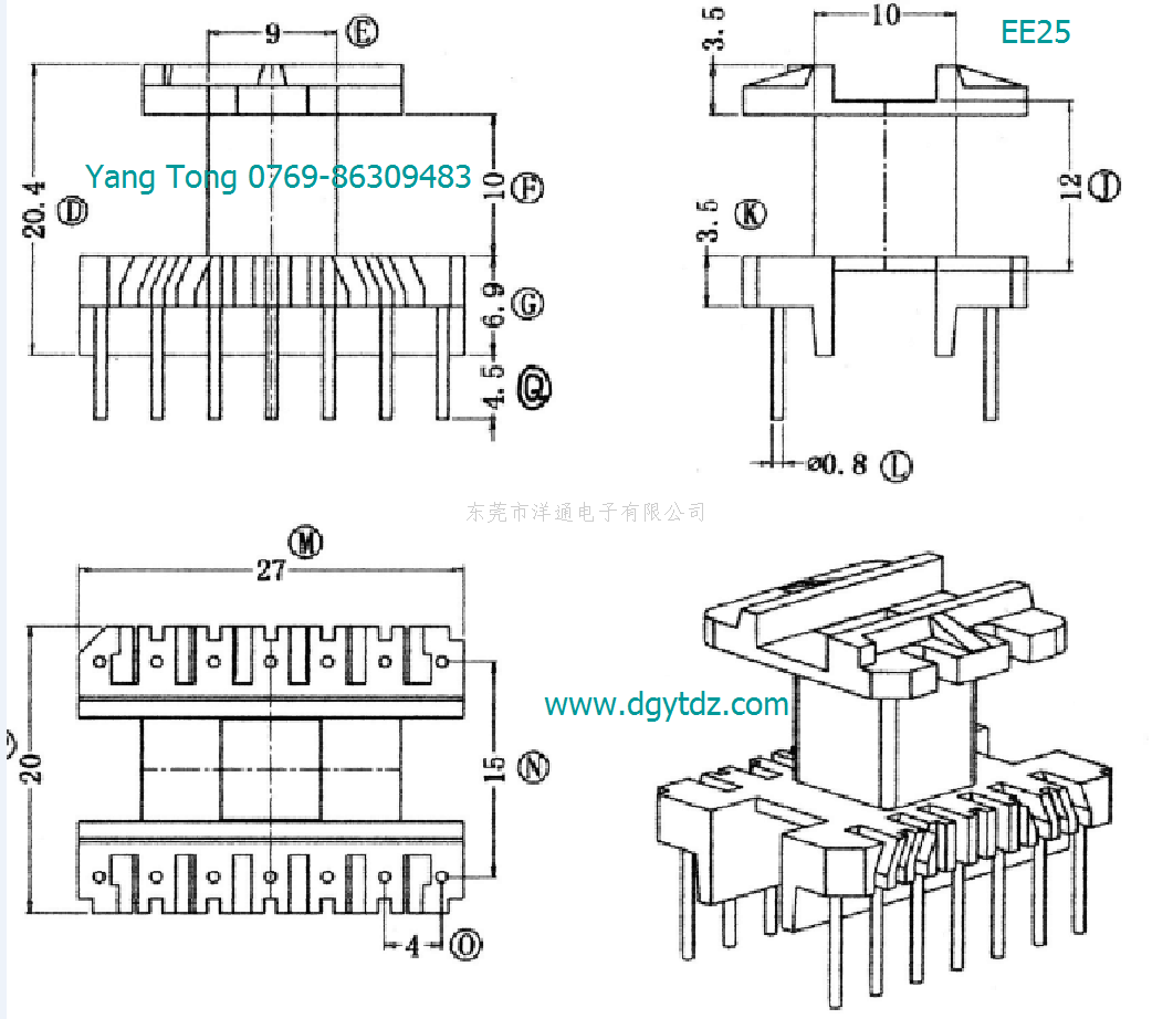 EE25变压器骨架EE25高频骨架EI25电木骨架EI25电源骨架 YT-2520 3