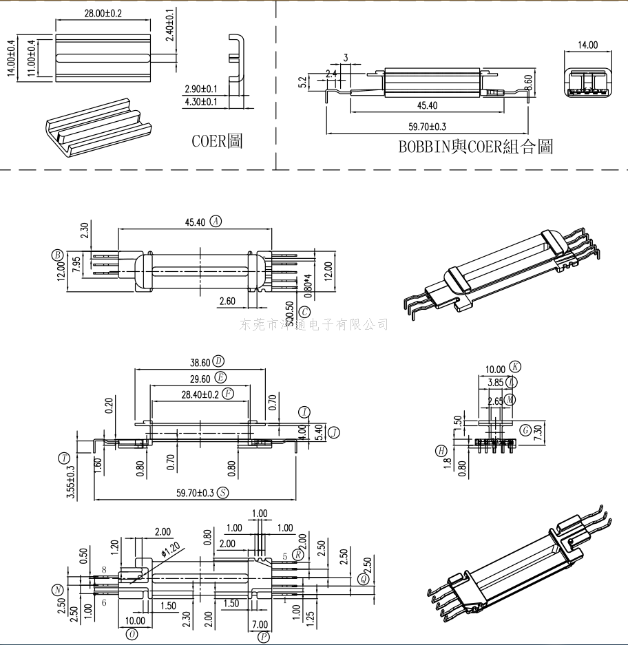 EE14变压器骨架EER14电木骨架EI14高频骨架卧式骨架 YT-1403 2