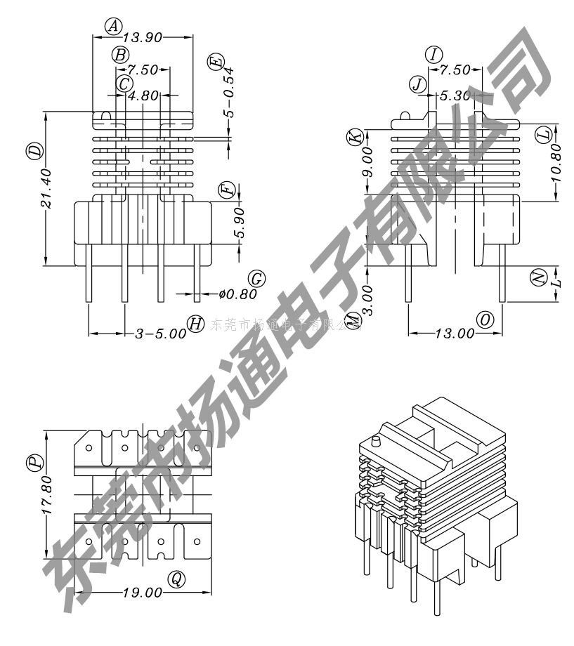 下一个:EEL19变压器骨架EE19电木骨架EI19高频骨架卧式骨架 YT-1914