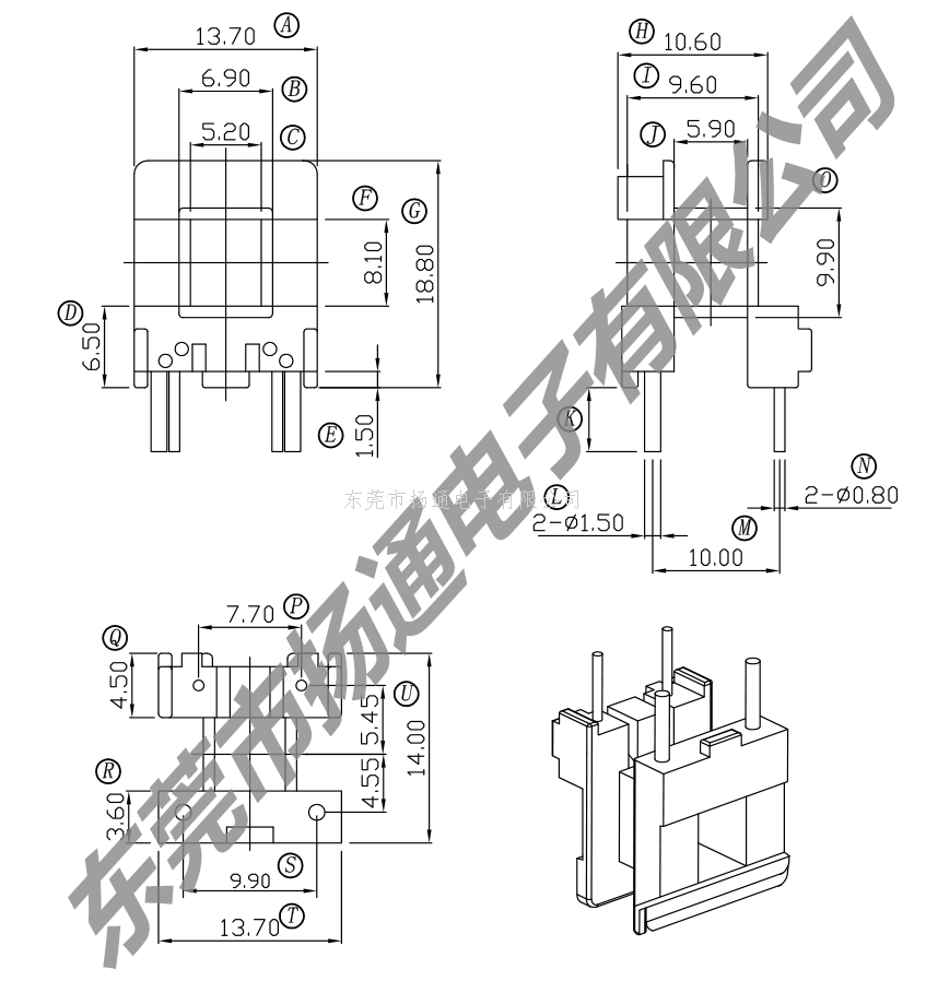 下一个:EE19变压器骨架EI19电木骨架EER18高频骨架卧式骨架 YT-1939-1