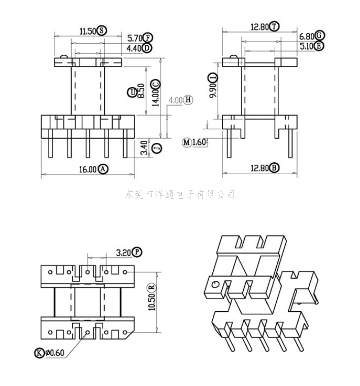EE16变压器骨架EER16电木骨架EI16高频骨架卧式骨架 YT-1609 二