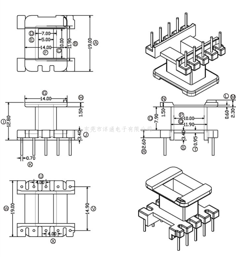 下一个:EE19变压器骨架EER16电木骨架EI20高频骨架卧式骨架 YT-1909-1 二