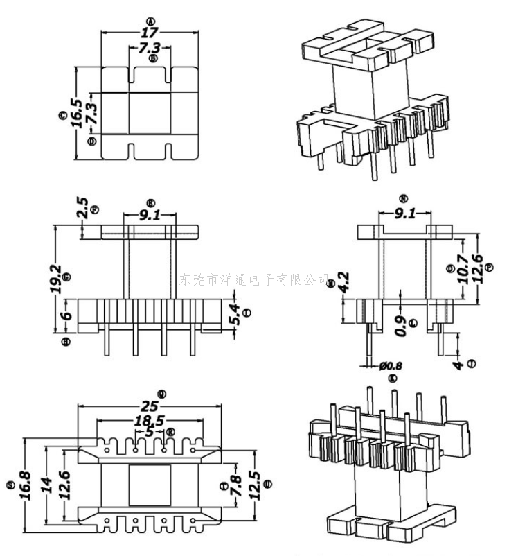 EE25变压器骨架EER24电木骨架EI20高频骨架卧式骨架 YT-2503 二